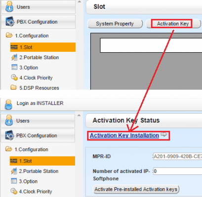 Vào PBX Configuration -> Configuration -> Slot -> kích hoạt license như hình