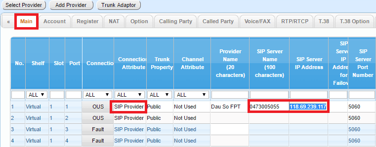 Bước 3: Chọn tab Main và khai báo thông số của nhà cung cấp SIP vào