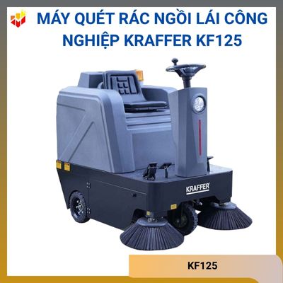 - Máy quét rác ngồi lái công nghiệp Kraffer KF125 sử dụng 4 bình ắc quy 12V dung lượng 58Ah để vận hành di chuyển xe. Xe quét rác còn thiết kế thêm ghế ngồi và vô lăng dễ dàng điều khiển xe quét rác mà không tốn nhiều công sức.