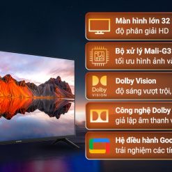 Google Tivi Xiaomi A 32 inch L32M8-P2SEA mang thiết kế hiện đại, màn hình HD kích thước 32 inch phù hợp để sử dụng trong các căn phòng có không gian nhỏ, tích hợp dải màu rộng Wide Color Gamut cho màu sắc sống động, công nghệ HDR10, HLG tái tạo hình ảnh rõ ràng, công nghệ Dolby Audio cho bạn được thưởng thức âm thanh vòm cuốn hút, tìm kiếm giọng nói bằng tiếng Việt với Google Assistant.