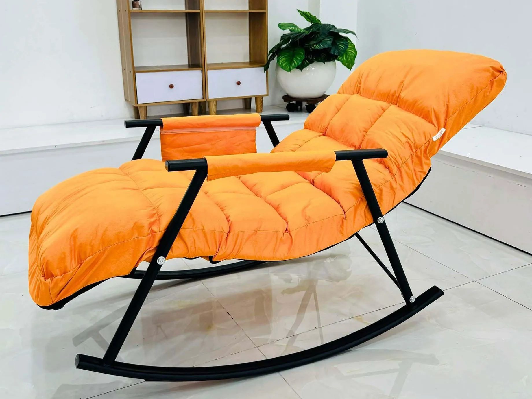 Ghế bập bênh thư giãn khung kim loại, có nệm Sumika 663 sở hữu màu sắc nổi bật sẽ làm bừng sáng cả căn phòng. Ghế thư giãn có kích thước mở là 140 x 60 x 90 cm, nặng 10kg, đầu ghế điều chỉnh ở 5 cấp độ. Khung ghế được làm từ thép sơn tĩnh điện dày 1mm cho khả năng chịu lực tốt tới 200kg, giúp ghế luôn chắc chắn, không bị rung lắc khi sử dụng nên phù hợp với nhiều đối tượng sử dụng.