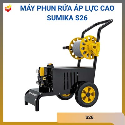 - Máy phun rửa áp lực cao Sumika S26 được thiết kế gọn gàng, trang bị 4 bánh xe giúp dễ dàng di chuyển với công suất lên tới 2600W và áp lực tối đa từ 80 – 150bar cho khả năng làm sạch hiệu quả và sử dụng an toàn. Motor 100% bằng lõi đồng với lưu lượng nước đến 600 lít/giờ.