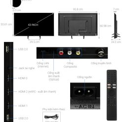- Bên cạnh đó, đi kèm tivi còn có remote tích hợp sẵn micro để bạn truyền đạt các khẩu lệnh mượt mà, chuẩn xác.