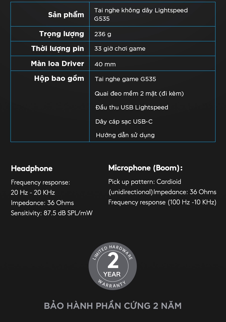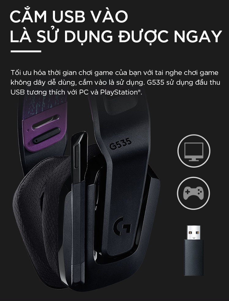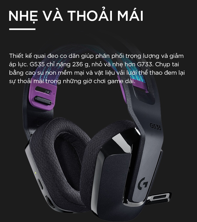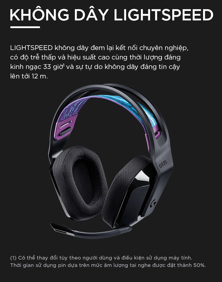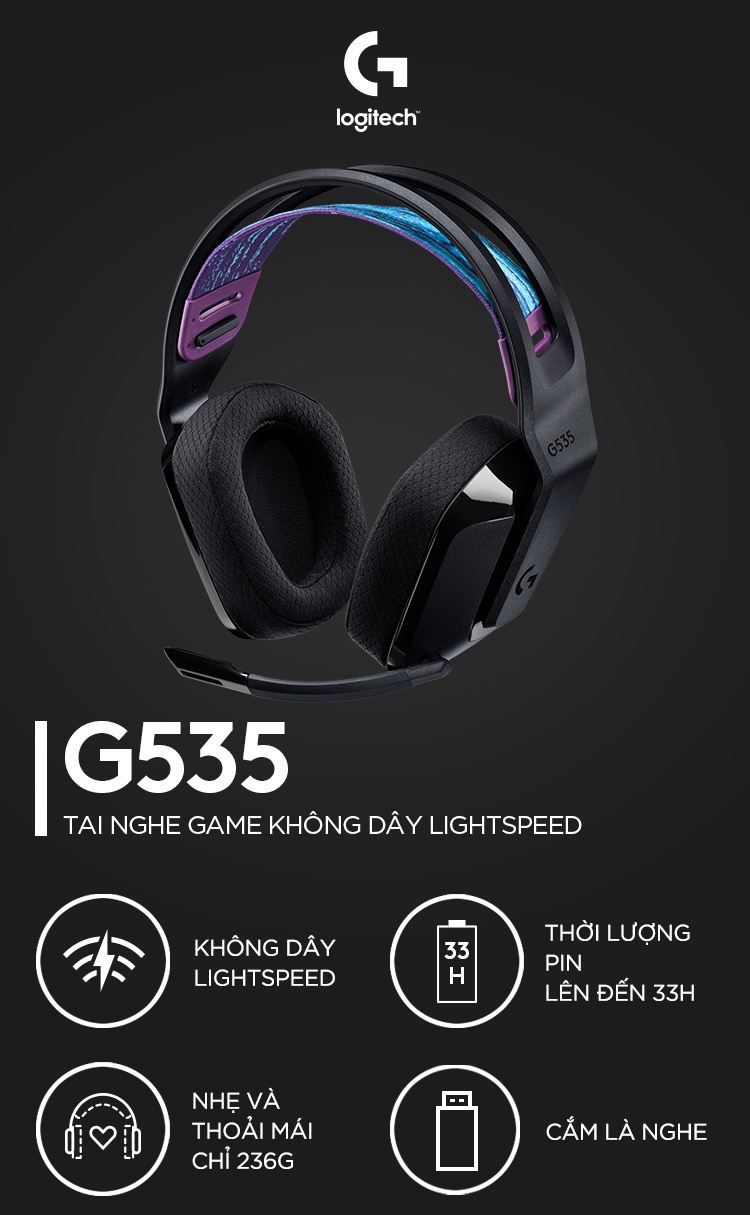 HEADSET LOGITECH G535 LIGHTSPEED WIRELESS GAMING/ĐEN (BLACK)