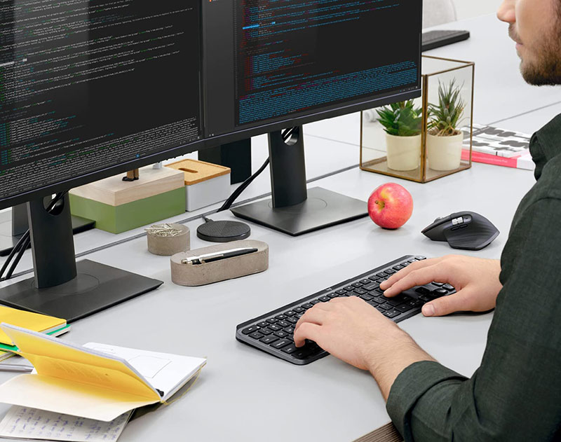 | Bàn phím không dây Logitech MX Keys S Thoải mái gõ phím Tự tin gõ trên bàn phím được chế tạo để tạo sự ổn định và chính xác. Các phím được làm theo hình dạng ngón tay tạo độ ổn định với mỗi lần nhấn phím. Toàn bộ phần thân của Bàn phím MX Keys S được đúc liền khối tạo ra một cấu trúc đặc biệt chắc chắn. |  |