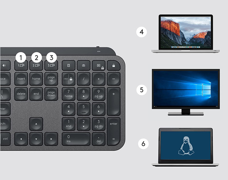 | Kết nối đa phương tiện, đa thiết bị Bàn phím MX Keys S có khả năng tương thích với nhiều thiết bị có kết nối Bluetooth không dây, phù hợp với nhiều hệ thống, bạn có thể làm việc liền mạch với Windows, macOS, Linux, ChromeOS, iPadOS, Android. |  |