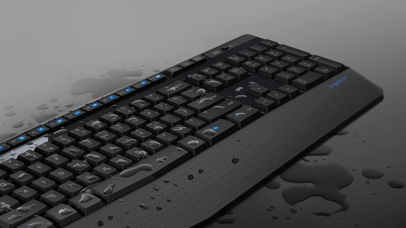 ![]() | Chống đổ tràn Thiết kế chống đổ tràn được kiểm nghiệm trong điều kiện giới hạn (tối đa 60 ml chất lỏng đổ tràn), các phím bền bỉ và ký tự bằng mực in bền giúp bạn luôn đúng tiến độ trong nhiều năm nữa bất kể mọi rủi ro trong công việc. *Không được nhúng bàn phím vào chất lỏng |