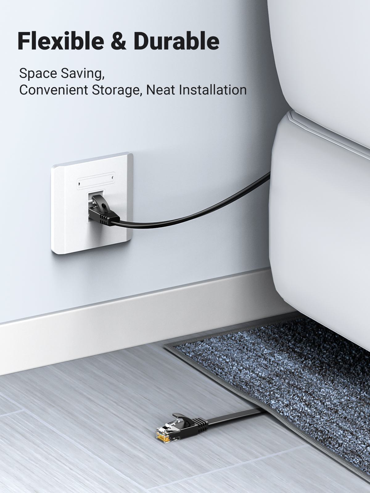- Cáp mạng Cat6 Ugreen thiết kế dạng dẹt mỏng giúp bạn dễ dàng thi công, thiết kế màu đen mang đến vẻ đẹp sang trọng cho không gian của bạn.