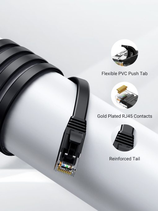 - Cáp mạng Cat6 Ugreen thiết kế dạng dẹt mỏng giúp bạn dễ dàng thi công, thiết kế màu đen mang đến vẻ đẹp sang trọng cho không gian của bạn.