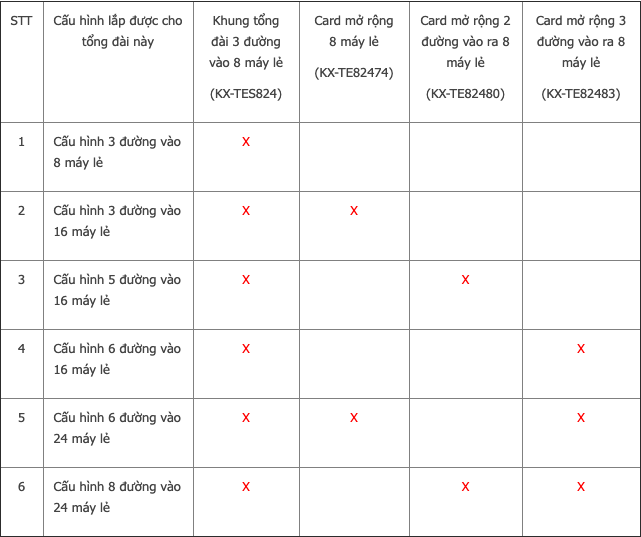 Từ sơ đồ trên ta thấy từ 1 khung tổng đài ban đầu ta có thể xây dựng nhiều cấu hình tổng đài khác nhau từ 8 máy lẻ đến tối đa 24 máy lẻ.